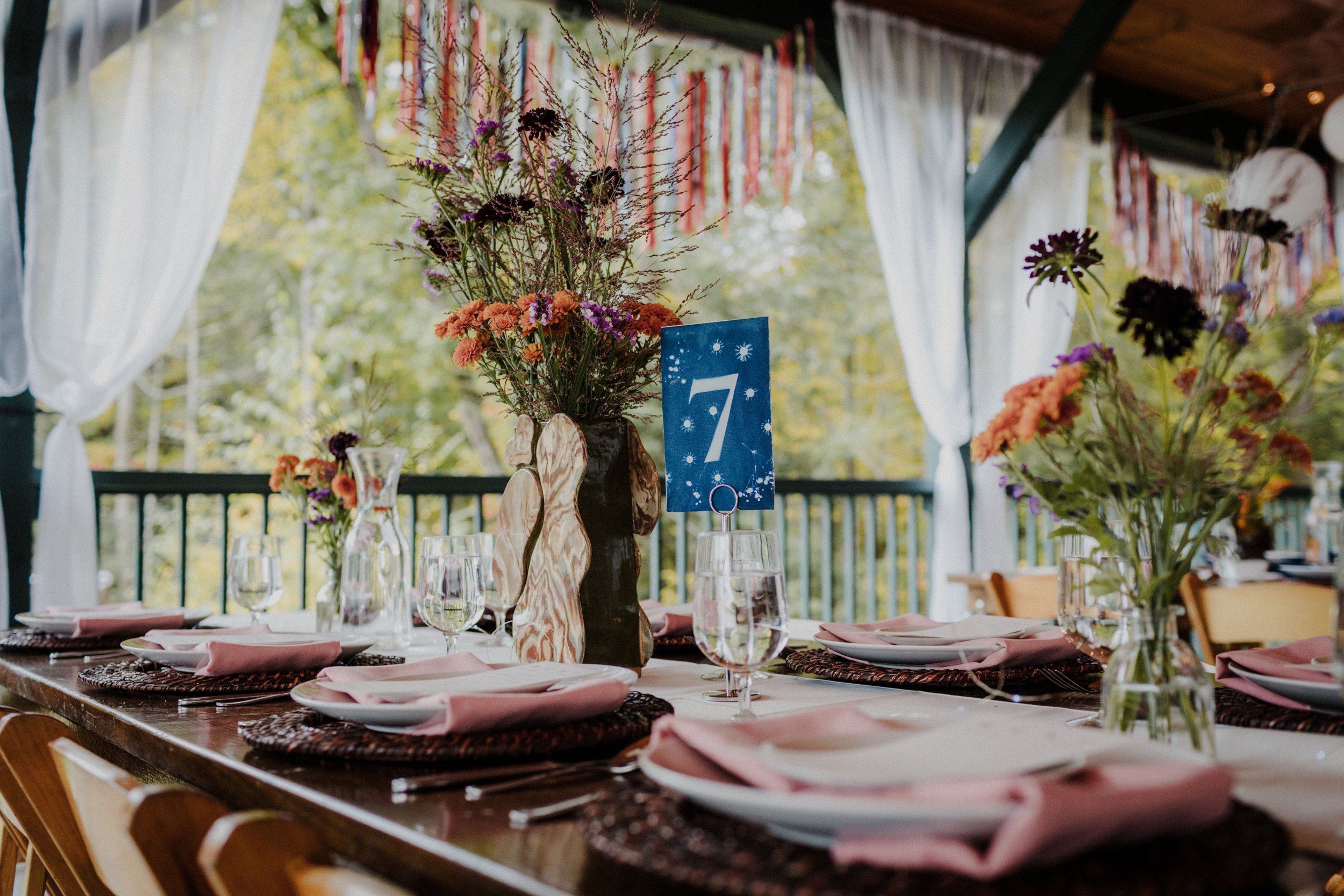 Winn and Teddy hosted a vibrant, unique, and joyful celebration deep in the New England forest at Laurel Ridge B&B. Surrounded by the lush greenery of early autumn, playful goats, and the most glamorous guests imaginable, they infused their artistic creativity into every detail of the event.